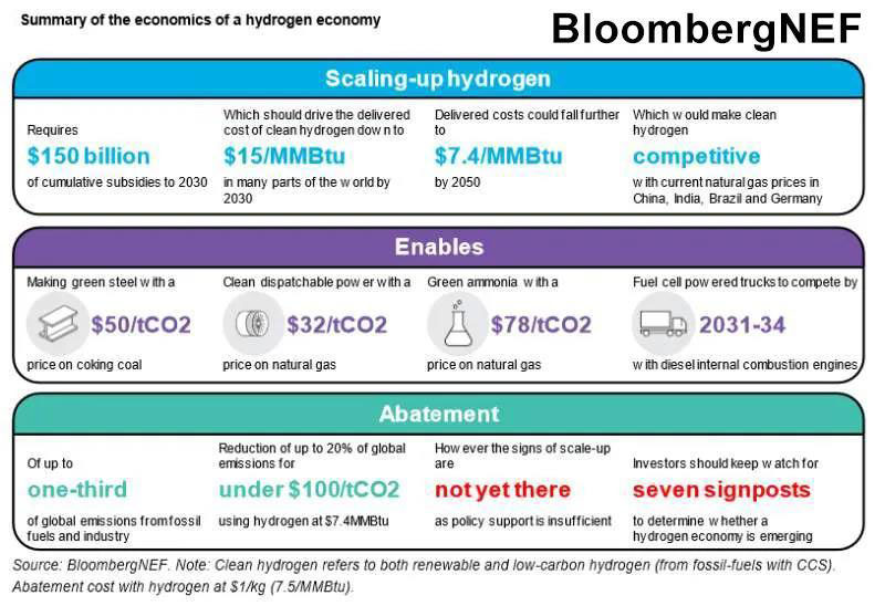 《氫能經(jīng)濟展望》報告是彭博新能源財經(jīng)全新發(fā)布的獨立性全球研究。報告指出,未來幾十年內(nèi)清潔氫能的部署有望將全球源自化石燃料和工業(yè)行業(yè)的溫室氣體排放量減少34%,而整體成本處于可接受范圍。不過,前提是必須出臺支持性政策擴大氫能的應(yīng)用規(guī)模,以降低其成本。