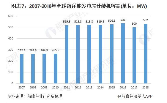 全球海洋發(fā)電裝機(jī)容量為532MW