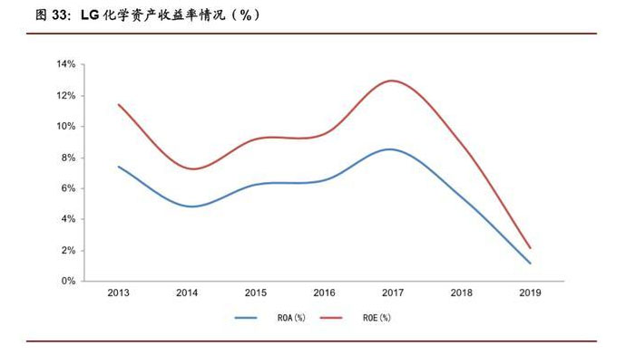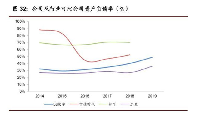 2019 年公司營業(yè)利潤率再次由正轉(zhuǎn)負(fù),為-5.4%,盈利能力同比下降的最大原因 是為應(yīng) ESS 火災(zāi)事故提取準(zhǔn)備金所產(chǎn)生的非經(jīng)常性虧損。LG 化學(xué)認(rèn)為隨著歐洲碳排法規(guī)的實(shí)施使得電動汽車的需求增加,以及汽車電池出貨量的持續(xù)增長和生產(chǎn)率的提高,預(yù)計(jì)銷售和利潤率將在每個季度中保持增長;