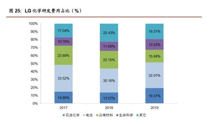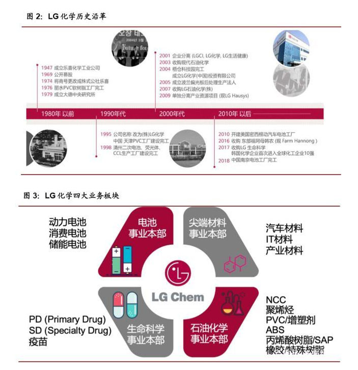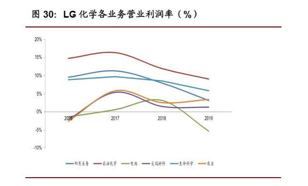 LG 化學(xué)總部位于韓國首爾,自 1947 年創(chuàng)立以來經(jīng)過 70 余年的不斷發(fā)展,公司 成長為韓國最大的綜合化學(xué)公司。2017 年,LG 化學(xué)位居全球化工行業(yè)最有價值 的化學(xué)品牌排行第四名。LG 化學(xué)的業(yè)務(wù)目前分為石油化學(xué)事業(yè)部、電池事業(yè)部、 尖端材料事業(yè)部和生命科學(xué)事業(yè)部,2019 年電池事業(yè)部貢獻(xiàn)了公司營業(yè)收入的 28%。