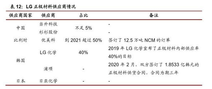 2019 年底,工信部發(fā)布了《新能源汽車推廣應(yīng)用推薦車型目錄(2019 年第 11批)》,其中首次包含了配套外資動力電池企業(yè)的車型,這意味著之前被白名單擋在門外的 LG 化學(xué)正式回歸中國市場,未來可能獲得更多中國車企的訂單。
