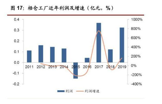 梧倉工廠負(fù)責(zé)韓國國內(nèi)市場供應(yīng),同時調(diào)控全球市場訂單。2017 年梧倉工廠實(shí)現(xiàn) 高速增長,收入和利潤增速分別達(dá)到 91%、754%,但隨后兩年利潤增速趨緩。 2019 年梧倉工廠實(shí)現(xiàn)營業(yè)收入約合人民幣 64.84 億元,利潤約 3238 萬元。