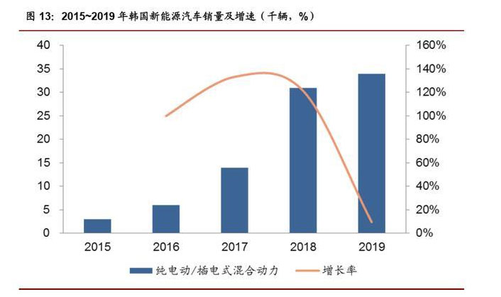 韓國的汽車產(chǎn)業(yè)也是其經(jīng)濟(jì)支柱,從 2014 年開始推行綠色環(huán)保汽車計(jì)劃,確定 以發(fā)展純電動汽車、混合動力汽車以及氫能汽車為核心的推廣政策。