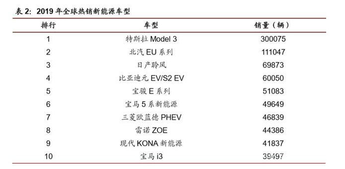 在新能源車型方面,特斯拉 Model 3 以銷量達(dá)到 30 萬輛的新高度奪得熱銷車型 第一名,排名第二的是北汽 EU 系列,日產(chǎn)聆風(fēng)則以全年銷售 6.99 萬輛的成績 打敗比亞迪元獲得了第三名。