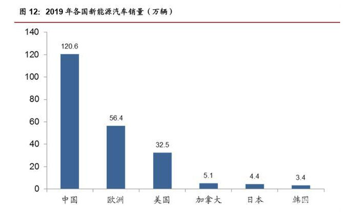 中國仍然是目前世界上最大的新能源汽車市場,雖然去年下半年的銷量出現(xiàn)了逐月下滑的趨勢,但 2019 年全年中國市場銷售了 120.6 萬輛新能源汽車,占據(jù)了 全球新能源汽車銷量的 55%。另一個主要的新能源車消費(fèi)市場則是歐洲,2019 年全球各個車企在歐洲共售出了 56.4 萬輛新能源汽車。美國市場也占據(jù)新能源 市場的主要地位,2019 年美國共售出了 32.5 萬輛新能源汽車。加拿大地區(qū)的消 費(fèi)者對于新能源汽車的接受度也比較高,2019 年加拿大地區(qū)共售出了 5.1 萬輛新 能源汽車。日本和韓國也是亞洲不可忽視的電動汽車消費(fèi)國,2019 年日本地區(qū) 共售出了 4.4 萬輛新能源汽車,在韓國則有 3.4 萬輛新能源汽車售出。澳大利亞、巴西、墨西哥、南非、新加坡等地區(qū)新能源汽車銷售總量都比較小,對全球新能源車市場影響并不算大。