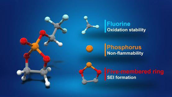 據(jù)了解,該團(tuán)隊(duì)通過(guò)融合常規(guī)電解質(zhì)溶劑EC和阻燃劑的化學(xué)結(jié)構(gòu)來(lái)設(shè)計(jì)其環(huán)狀磷酸鹽基電解質(zhì)。這提供了兩個(gè)分子的磷酸鹽特性,包括溶劑的耐高壓性和阻燃劑的不易燃性,從而最大程度地降低了鋰電池起火的風(fēng)險(xiǎn)。