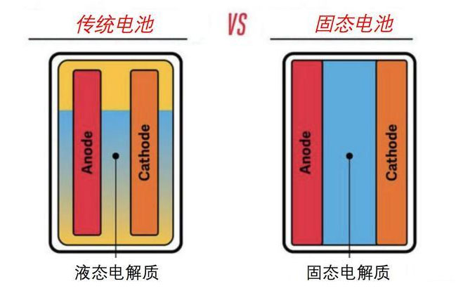 固態(tài)電池,將液態(tài)的電解液變?yōu)楣虘B(tài),即電池正負(fù)極之間沒有液態(tài)電解液,同時(shí)鋰離子也可實(shí)現(xiàn)正負(fù)極間的往返。