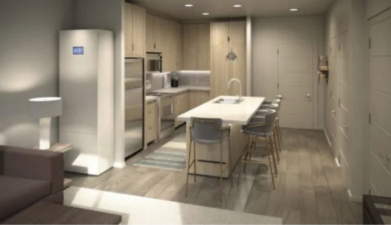 但是Soleil Lofts項(xiàng)目的獨(dú)特之處在于,開發(fā)商經(jīng)過精心設(shè)計(jì),將電池儲(chǔ)能系統(tǒng)部署每套公寓中(有些公寓面積很?。?,而不是部署在專用的空間。
