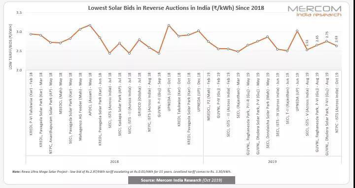 印度2018~2019年招標(biāo)電價(jià)走勢(shì)