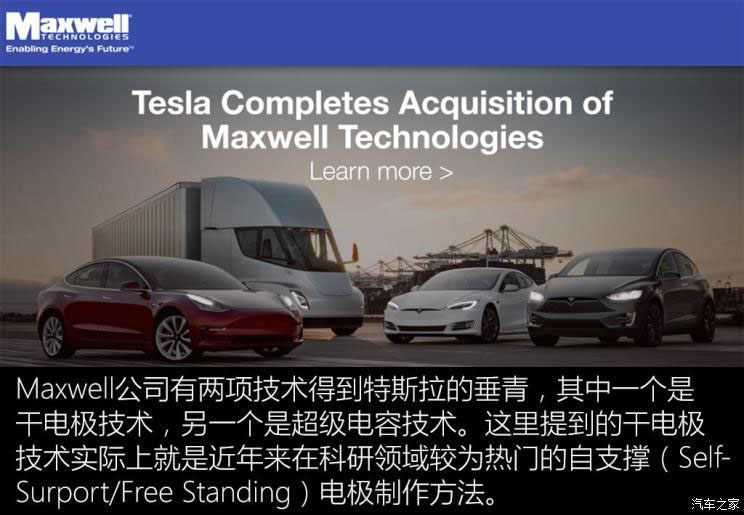 Maxwell公司的干電極技術(shù)可以使鋰電池電芯能量密度達(dá)到300Wh/kg以上,目前最大能達(dá)到500Wh/kg。相比起目前國內(nèi)常見的NCM811三元鋰離子電池電芯(NCM表示正極材料為鎳鈷錳三元材料,811表示鎳鈷錳成分的比例為8:1:1)最高約300Wh/kg的能量密度,特斯拉的新電池技術(shù)能量密度提升潛力更大。這在未來或?qū)⒋俪杉冸妱?dòng)車?yán)m(xù)航里程的一次飛躍。
