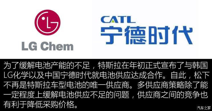 特斯拉與松下的合作由來已久,在很長一段時(shí)間里,松下是特斯拉車型電池的唯一供應(yīng)商。近幾年,特斯拉在全球的擴(kuò)張?zhí)崴?,松下的電池產(chǎn)能已無法滿足特斯拉新車產(chǎn)能的需求。特斯拉中國工廠在今年年初正式投產(chǎn),隨著產(chǎn)能的爬升,尋找替代的電池供應(yīng)商成為當(dāng)務(wù)之急。