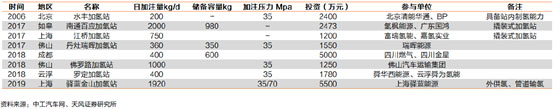 國(guó)內(nèi)部分加氫站投資情況