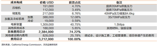 ▲美國(guó)站內(nèi)水電解制氫加氫站建設(shè)成本組成