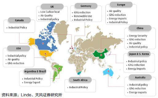 ▲海外氫能源政策分布圖