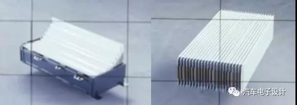 第一種是12個(gè)電芯(2P矮模組)。這個(gè)設(shè)計(jì)就是為了轎車設(shè)計(jì)考慮的,2*6模組像LEAF、SOUL EV這樣水平放置,這個(gè)體積能量密度要犧牲的,因?yàn)橐紤]膨脹的問題。按照單個(gè)4.08kWh的能量,12個(gè)模組做成轎車的50kWh方案。這個(gè)模組的能量密度不高,適用于特定的需求,后面那些跑車可以用 。