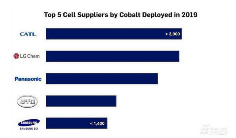 ▲全球乘用車動(dòng)力電池金屬鈷使用量前五的公司