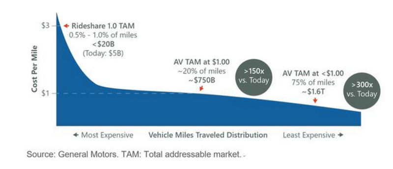 關(guān)于無人駕駛出租車的經(jīng)濟(jì)效益,有幾家公司提出了令人信服的例子。例如,通用汽車(GM)旗下的Cruise最近推出了一個(gè)新的自動(dòng)駕駛平臺(tái),名為Cruise Origin。這是一款電動(dòng)無人駕駛系統(tǒng),沒有方向盤,沒有后視鏡,也沒有踏板,設(shè)計(jì)能跑100萬英里,是普通汽車的六倍。Cruise估計(jì),如果每個(gè)舊金山家庭自駕或共乘這種車,那么每年每戶平均下來可以節(jié)省5000美元。