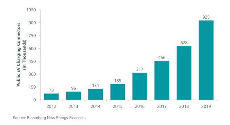 圖三:電動(dòng)汽車充電基礎(chǔ)設(shè)施的增加