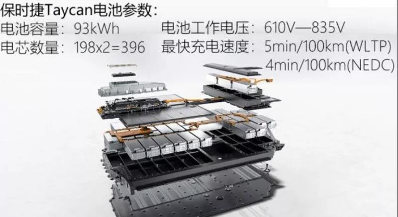 如圖3所示,保時捷Taycan的雙層蓄電池包容量93KWh,綜合續(xù)航里程463公里。理想狀態(tài)下,Taycan Turbo S車型通過最大270千瓦的充電功率,在22分30秒內(nèi)即可將電量從5%補充到80%。