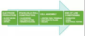目前動(dòng)力電池廠商普遍處于電池“焦慮”的困境中。通常而言,鋰離子電池制造程序非常復(fù)雜,包括電極生產(chǎn)、堆疊結(jié)構(gòu)和單元裝配,然后要執(zhí)行電氣測(cè)試,以便評(píng)定電池容量和性能以及在工作中的額定值。
