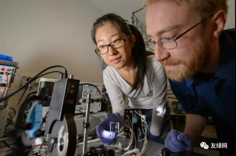 化學(xué)工程和材料科學(xué)的博士生趙一木(音)和化學(xué)工程和材料科學(xué)的助理教授理查德·倫特,攝影:GL Kohuth
