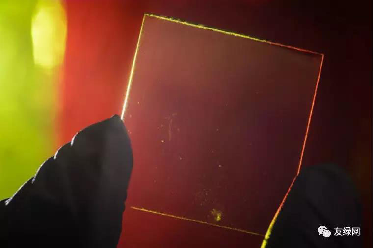 如果仔細(xì)觀察,您會(huì)在材料塊的邊緣看到幾個(gè)黑條。但是,活性有機(jī)材料以及整個(gè)太陽能電池板都是高度透明的。
