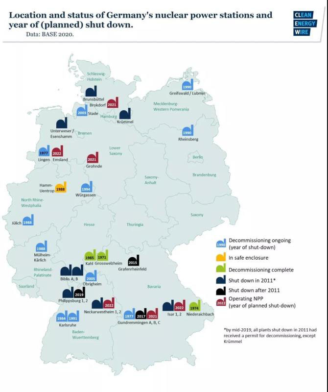 按2011年修訂的德國(guó)《原子能法》的要求,德國(guó)EnBW公司的菲利普斯堡核電站2號(hào)機(jī)組(KKP 2號(hào))2019年12月31日下午6:55正式停運(yùn),EnBW預(yù)計(jì)拆除KKP 2大約需要10至15年。
