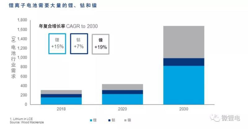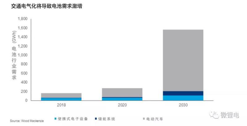 電池能量密度對電動汽車的成功至關重要,電池技術的創(chuàng)新使消費者能夠使用更輕便、更節(jié)能、更便宜、續(xù)航更久的汽車。因此,對高能量密度鋰離子電池的需求將和對電動汽車本身的需求同步飆升。鋰離子電池需要大量的關鍵金屬物質(zhì),其中鋰、鈷和鎳是最關鍵的。當然,在中國,不含鈷和鎳的磷酸鐵鋰電池用于特定的交通領域以及儲能領域更加普遍。