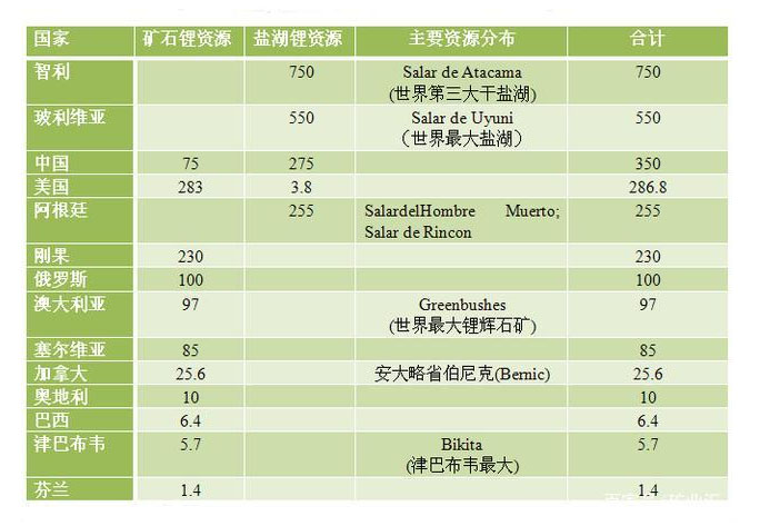 各國(guó)鋰資全球主要鋰礦床分布圖