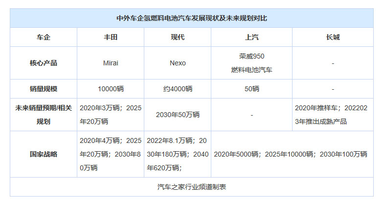 在商業(yè)化進(jìn)程上,長城汽車與上汽集團(tuán)還有一段距離。按照長城汽車此前公布的規(guī)劃顯示,其氫燃料電池汽車至少要在2023年才能夠?qū)崿F(xiàn)量產(chǎn)上市。