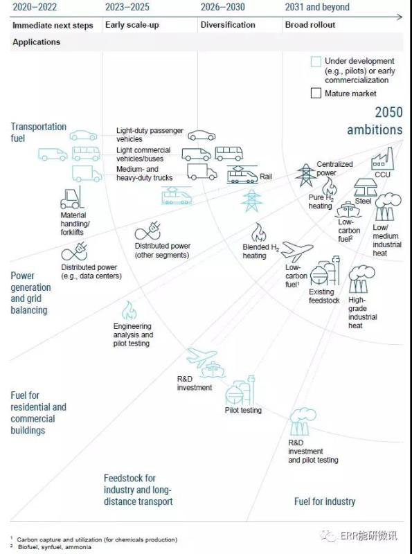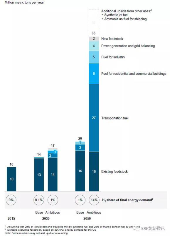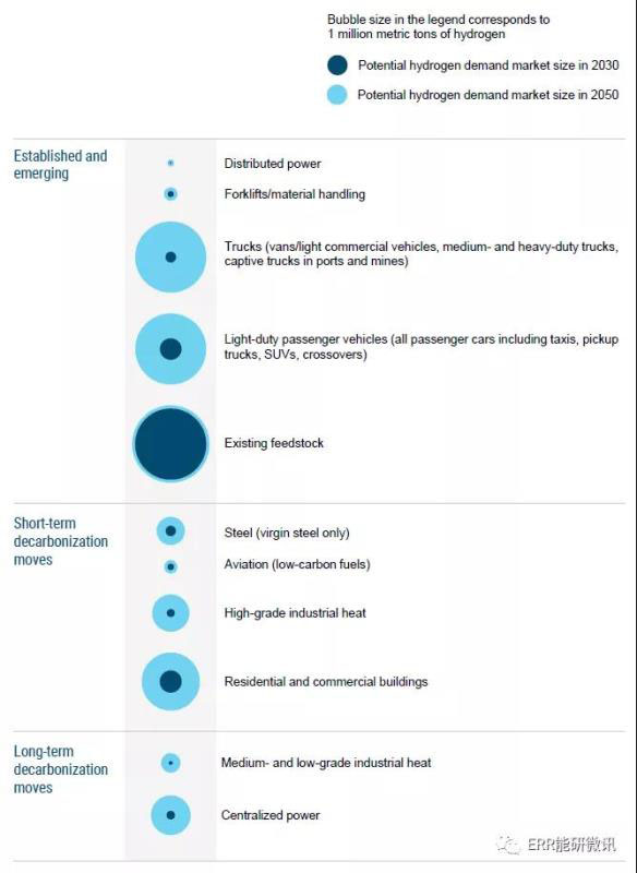 圖2 不同部門氫能的潛在需求(2030和2050視角)