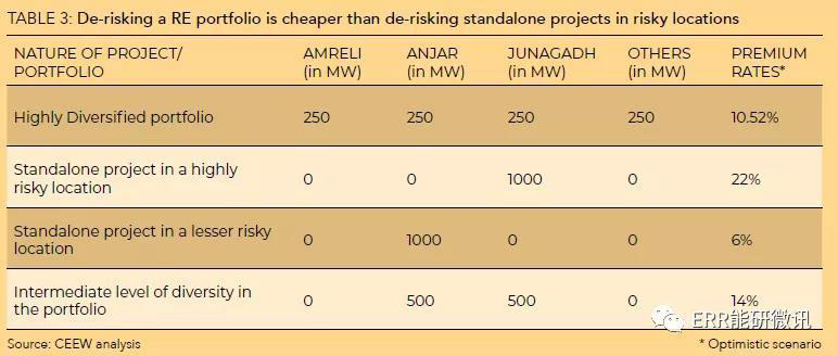 在某些特定月份限電量可能很高的邦,可以通過減少其他邦的限電量來實現(xiàn)互惠互利。與只在少數(shù)幾個邦有項目的開發(fā)商相比,在多個邦/國家有項目的可再生能源開發(fā)商/投資者可以享受更低的投資組合溢價。但是,對于項目集中在一個循環(huán)/狀態(tài)的小型開發(fā)商,該工具提供了去風險服務,盡管價格更高(見表3)。