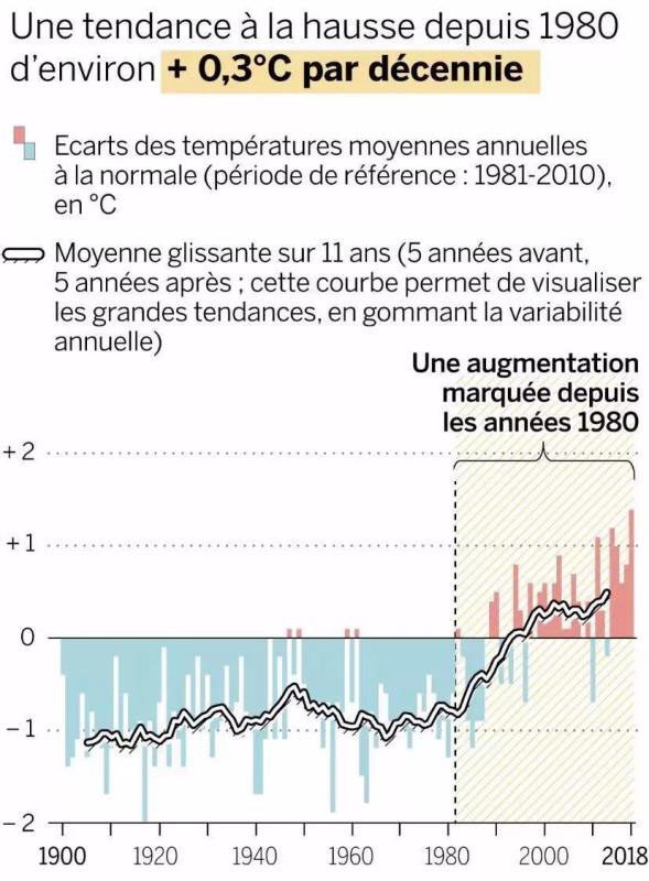 世界氣象組織發(fā)布報告,2019年1月至10月期間的全球平均氣溫溫度與工業(yè)前時期相比,上升1.1℃。世界氣象組織指出,“面對全球變暖,我們沒有時間了”,1980年以來,每10年上升0.3°C,2010-2019年“幾乎肯定”是歷史上最熱的10年。按目前的趨勢,到本世紀(jì)末氣溫可能會上升到4°C或5°C。即使各國履行其目前在2015年的《巴黎協(xié)定》下的承諾,全球平均氣溫升幅也將超過3°C,控制溫升不超過1.5-2°C的目標(biāo)難以實現(xiàn)。
