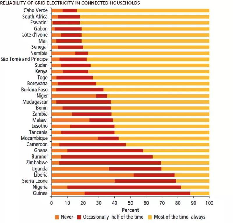 在有電網(wǎng)的地方,不穩(wěn)定還會(huì)引起其他問(wèn)題。最近的一項(xiàng)調(diào)查發(fā)現(xiàn),大多數(shù)尼日利亞科技公司每月面臨30次或更多的停電,并且超過(guò)一半的人將電力視為開展業(yè)務(wù)的“主要”或“嚴(yán)重”限制。