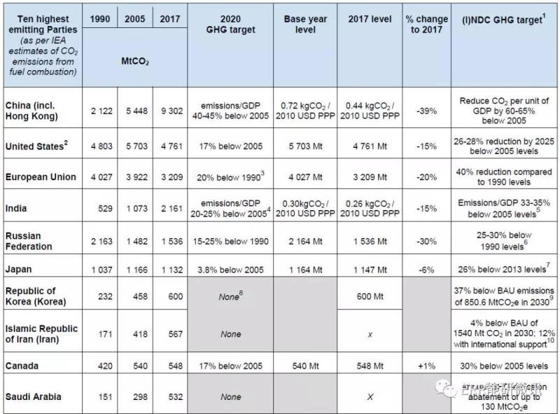 各國現(xiàn)在已將重點(diǎn)轉(zhuǎn)移到明確和透明地履行承諾和提高雄心水平上?!栋屠鑵f(xié)定》的基礎(chǔ)是各國作出的國家決定的貢獻(xiàn),這些貢獻(xiàn)旨在勾勒出它們解決氣候變化問題(包括減少溫室氣體排放)的“最高可能雄心”。目前的國家數(shù)據(jù)中心涵蓋2020年至2030年或2025年這一時期,大多數(shù)國家包括表1和圖14(A和B)中總結(jié)的十大排放國和其余國際能源機(jī)構(gòu)成員國的量化減排目標(biāo)。提交(預(yù)期)國家數(shù)據(jù)中心的國家占全球二氧化碳排放量的96%。