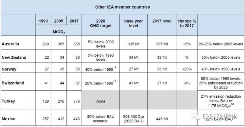表1 十大排放國和國際能源署成員國的溫室氣體減排目標(biāo)