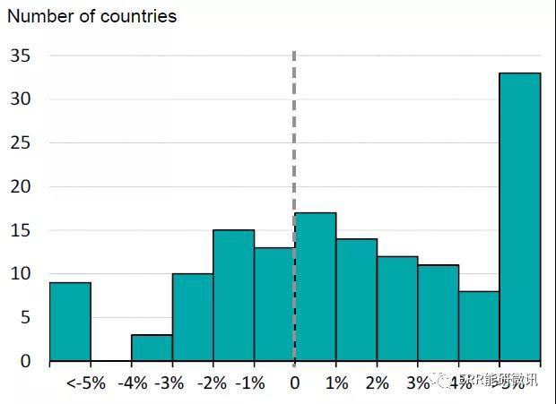 總的來說,自2010年來三分之二的國家二氧化碳排放量出現(xiàn)了增長(圖5)。33個國家(超過總數(shù)的20%)年均增長速度超過了5%;其排放總量占全球總量的5%且均勻的分布在不同的地區(qū)。