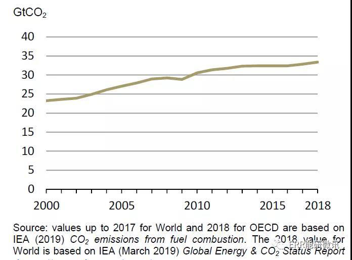 在持續(xù)3年的穩(wěn)定之后,2017年全球燃料燃燒排放的二氧化碳量再次出現(xiàn)上漲,達(dá)到了328億噸??靾髷?shù)據(jù)顯示,由于經(jīng)濟(jì)的強(qiáng)勁增長以及可再生能源普及的放緩遠(yuǎn)遠(yuǎn)抵消了能源效率的提高,因而在2018年該數(shù)值上漲的甚至更快(圖1)。