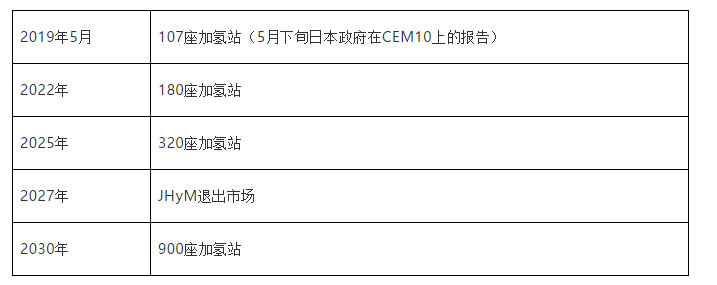 加氫站的部署也遵循上述的方法,JHyM可以設(shè)想為一個財團(tuán),幫助部署公共加氫站(HRS)直到大約2027年,此后它將被解散,不再被需要。JHyM有關(guān)加氫站時間表如下: