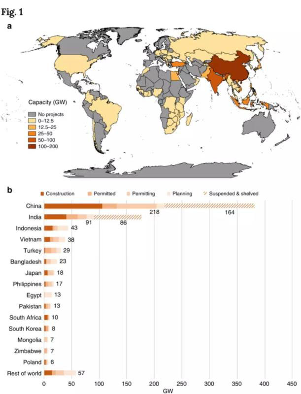 《自然·通訊》發(fā)表美國學(xué)者的文章,指出盡管美國和歐盟的煤炭使用出現(xiàn)停滯或下降,但全球煤電容量的增長仍在繼續(xù),在一些地方增長相當(dāng)迅速。全球煤電總裝機(jī)容量從2000年的1000吉瓦增加到2015年的2000吉瓦。目前全球有60多個國家正在積極規(guī)劃、頒發(fā)許可和建設(shè)煤電廠。到2030年預(yù)計將有近600吉瓦的新煤電裝機(jī)投入使用,其中223吉瓦已經(jīng)在建,377吉瓦處于早期開發(fā)階段。處于早期規(guī)劃和許可階段的煤電廠尤其應(yīng)該關(guān)注,因為叫停這些擬議中的煤電機(jī)組比停止已經(jīng)在建的電廠容易。