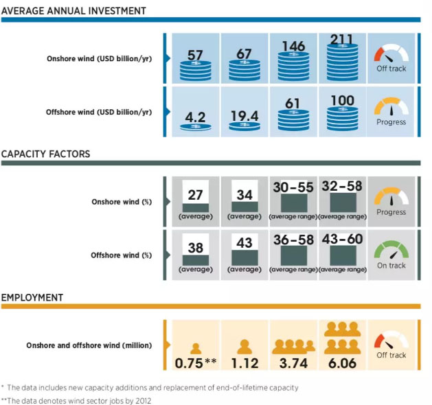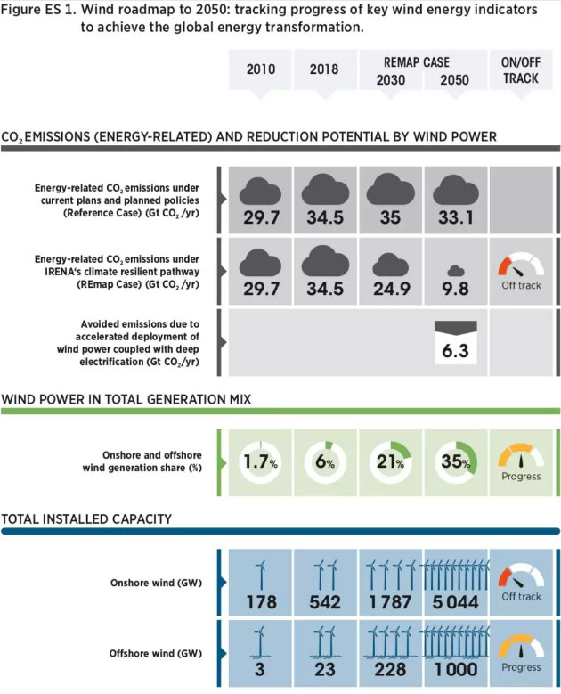 中國儲能網(wǎng)訊:國際可再生能源署(IRENA)在北京發(fā)布“風電未來”報告,包括這樣一張表格:
