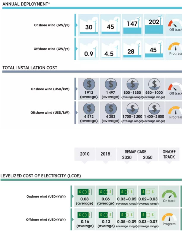 IRENA最新報告還包括以下關鍵數(shù)字: