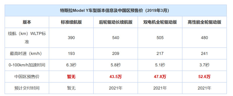 Model Y則已于2019年3月正式對外發(fā)布,新車定位為五門中型SUV,可提供七座版本選裝,彼時(shí)中國區(qū)預(yù)售價(jià)為43.5萬元起。車輛共擁有四個(gè)配置版本,分別為標(biāo)準(zhǔn)續(xù)航版、長續(xù)航版、雙電機(jī)全輪驅(qū)動(dòng)版以及Performance高性能全輪驅(qū)動(dòng)版。