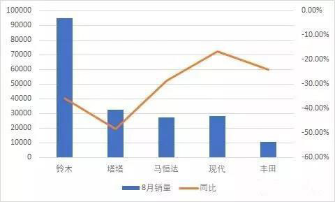 今年以來印度汽車市場表現令人乍舌。8月,當地市場銷量下滑41%,這已是印度汽車市場連續(xù)第10個月銷量下滑。塔塔汽車作為印度最大的汽車公司降幅最大,下降了48.4%到3.23萬臺。