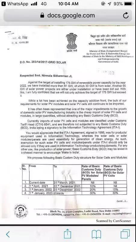 然而,印度政府的行事再次讓人跌破眼鏡,就在昨天,有消息稱,印度將再次加稅!印度新能源和可再生能源部(MNRE)負責人辛格(RK Singh)建議財政部將進口太陽能電池和組件納入基本關稅(BCD),以便在“印度制造”(Make in India)計劃下對國內制造業(yè)進行再提振。