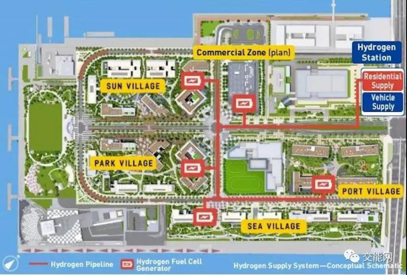 項(xiàng)目計(jì)劃在城鎮(zhèn)附近建起一座加氫站,并通過地下管道將氫氣送往五個住宅區(qū),并將氫氣輸送給各個住宅區(qū)內(nèi)的氫燃料電池發(fā)電機(jī),以滿足居民的用電、用熱需求。同時,加氫站也為城鎮(zhèn)內(nèi)的快速公交系統(tǒng)(BRT)和氫燃料電池車提供氫氣供應(yīng)。加氫站的建設(shè)和運(yùn)營由JXTGNippon Oil&Energy公司負(fù)責(zé)。