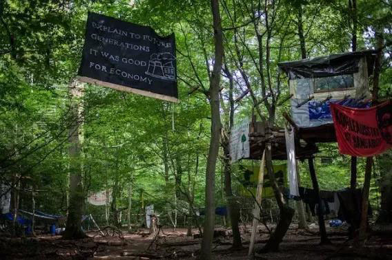 環(huán)保活動(dòng)人士住進(jìn)了樹屋和帳篷里,抗議擴(kuò)建漢巴赫(Hambach)煤礦的計(jì)劃