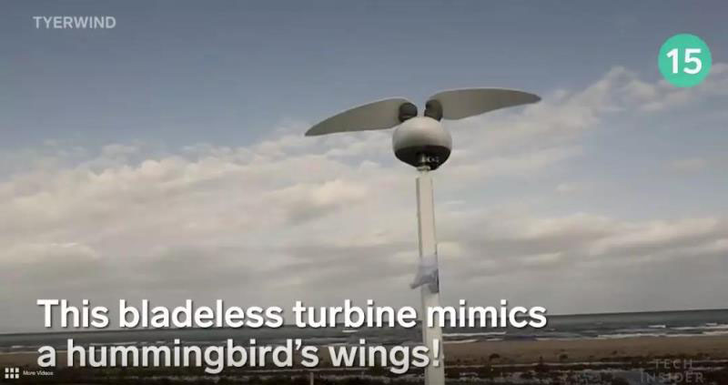 15. 這個無葉片渦輪機(jī)模仿了蜂鳥的翅膀!Tyer Wind Converter使用拍打動作而不是旋轉(zhuǎn)刀片。它沒有葉片式渦輪機(jī)那么強(qiáng)大......但是尺寸越小,它就越適合人口稠密的地區(qū)。