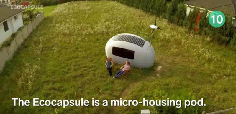 10. Ecocapsule是一個微型住房。并且可以容納兩個人長達(dá)一年。它擁有所有必要的設(shè)施:廚房,浴室和存儲空間。它由太陽能電池和風(fēng)力渦輪機(jī)提供動力,可以收集和過濾雨水。