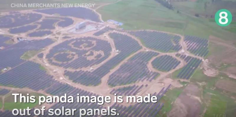 8.這張熊貓圖像是用太陽能電池板制成的。中國的使命是建造100座這樣的熊貓發(fā)電廠。一家工廠每年可為10,000多戶家庭供電。這個想法是由15歲的Ada Li Yan-tung在2015年提出的,她建議設(shè)計將讓年輕人參與可再生能源。